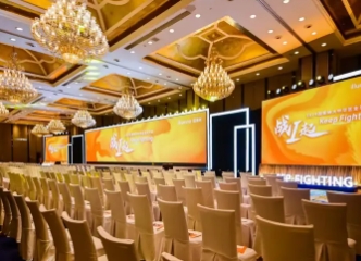 现场布置:鲜花、舞台、红地毯、音响、背景板等。